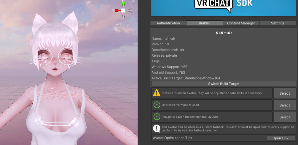 Vrchat Avatar package (pc and quest) ready for upload!